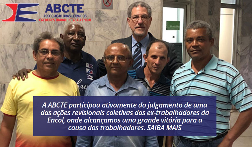 A ABCTE é a associação representativa dos ex-trabalhadores da ENCOL S/A (hoje massa falida), que lutam e esperam há 20 anos pelo pagamento integral de seus direitos trabalhistas no processo de falência da empresa, decretada em março de 1997.