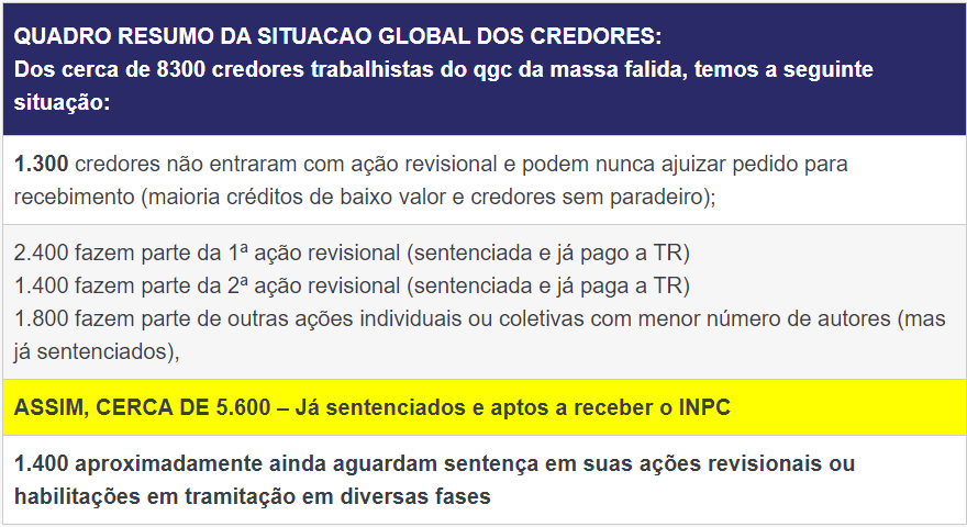 “Vencemos uma batalha, mas a guerra ainda está em curso e seguimos firmes na defesa de credores e familiares para que a massa falida use os mais de R$ 180 milhões que tem em caixa e pague o que os ex-trabalhadores têm direito”, finalizou.
